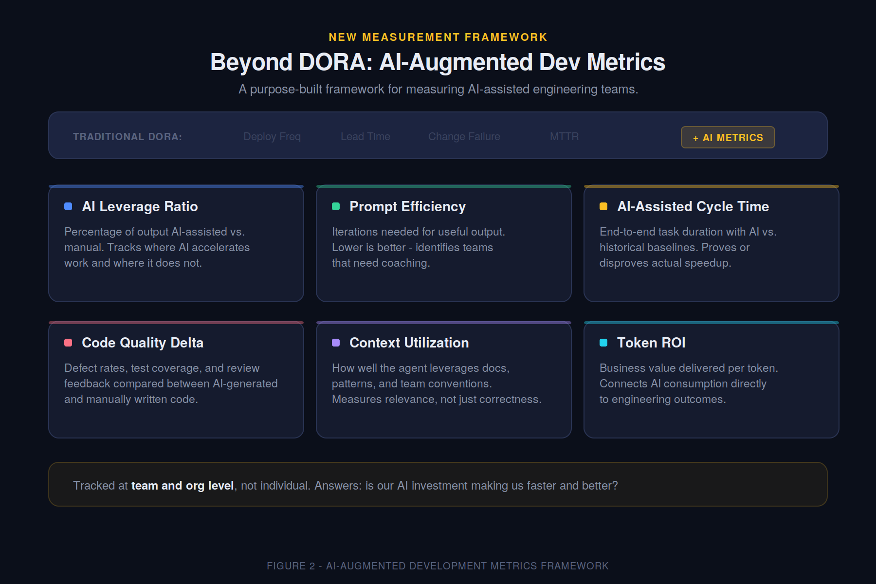 DORA metrics are still useful, but AI changes the shape of work. Enterprises care about outcomes: does AI reduce end-to-end cycle time, does it reduce review latency, does it improve or hurt defect rates, and does it generate code that matches the team’s patterns.